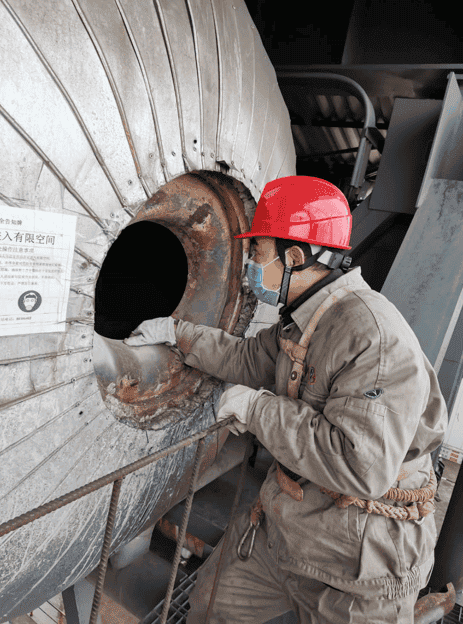 为保障复工复产企业特种设备安全,在新冠肺炎疫情防控的关键时期,省锅检院南昌分院检验三科科长龚水龙同志,克服父亲年迈行动不便需要照顾的困难,不顾风雨交加的恶劣天气影响,带领三科检验检测人员和党员先锋队同志对南昌方大特钢电站锅炉实施了现场检验检测,截至目前检验过程中发现了高温过热器出口集箱导汽管弯管处存在鼓包变形、过热器受热面管管卡脱落等安全隐患,并提出了隐患消除方案。