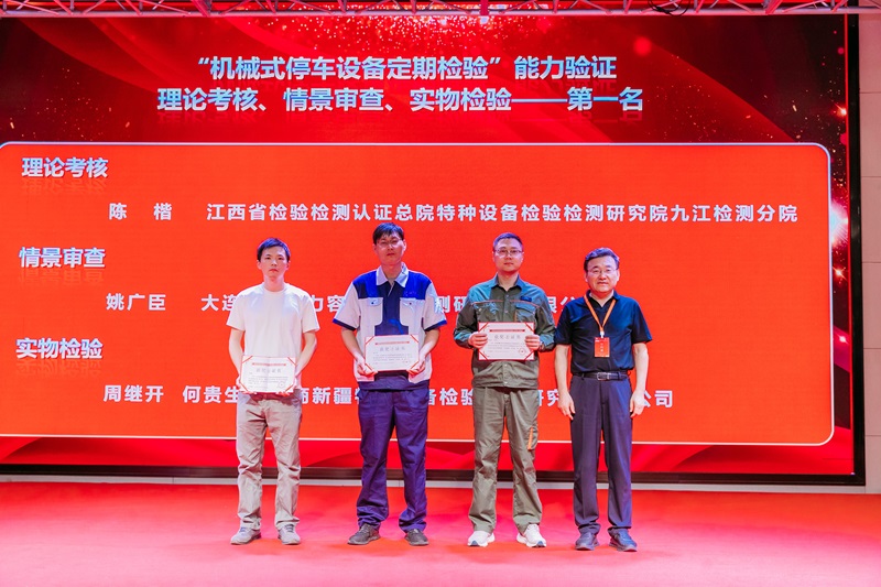 本次能力验证活动共设理论考核、情景审查、实物检验三个环节,多维度考查参赛选手对机械式停车设备知识的掌握程度和检验能力。在理论考核环节,九江检测分院陈楷同志凭借扎实的专业基础和稳定的现场发挥,从众多选手中脱颖而出,获得理论考核第一名的优异成绩,为总院特检院再添荣誉。