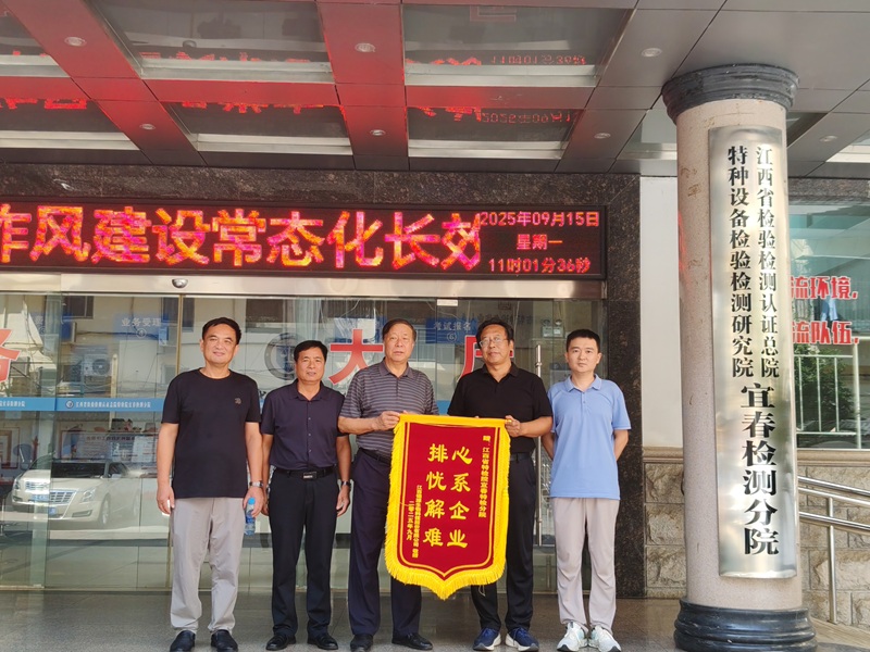 9月15日,总院特检院宜春检测分院收到江西锦源生物科技股份有限公司送来的一面印有“心系企业 排忧解难”的锦旗,对分院在企业锅炉改造中提供的专业高效服务表示衷心感谢。