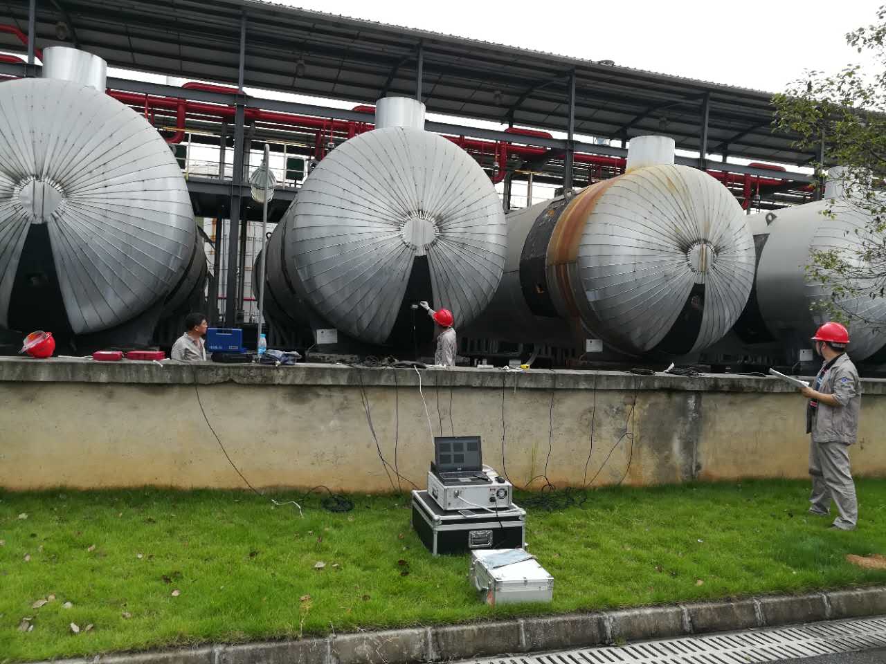 省锅检院检验四部对广东省韶关市乳源县东阳光氟有限公司100立方米卧式氢氟酸贮罐声发射检验
